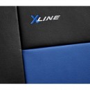 Część skórzana pokrowców podszyta została materiałem usztywniająco stabilizującym, który charakteryzuje się wysoką odpornością na przetarcia, jest wodoodporny i plamoodporny oraz trwały. Materiał tapicerski użyty w pozostałej części pokrowca został zalaminowany pianką o grubości 2mm, której celem jest ograniczenie przesuwania się pokrowców i ich dodatkowe wzmocnienie. Pokrowce na przednie fotele posiadają gustowny haft z nazwą modelu (X-LINE).