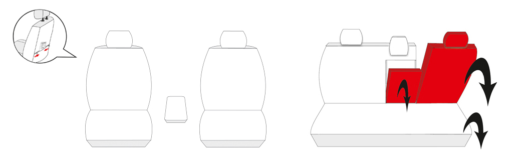 Kolejną istotną zaletą odróżniającą pokrowce miarowe od uniwersalnych jest to, że każdy element siedzeń posiada swój własny pokrowiec (pokrowce na przednie fotele są jednoczęściowe). Jeśli tylna kanapa jest dzielona, jeśli występują podłokietniki, to na każdą z tych części przewidziany jest odrębny pokrowiec – dopasowany do ich kształtów. Jeżeli fotele samochodowe wyposażone są w tylne kieszenie lub stoliki – one także są uwzględnione przez producenta, który wykonał w tych miejscach otwory wykończone zamkiem błyskawicznym, umożliwiające bezproblemowe korzystanie z tych elementów wyposażenia.